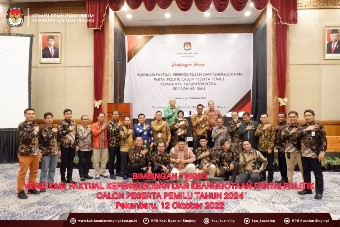 #TemanPemilih, KPU Kabupaten Kuantan Singingi mengikuti Bimbingan Teknis Verifikasi Faktual Kepengurusan dan Keanggotaan Partai Politik Calon Peserta Pemilu tahun 2024 yang digelar oleh KPU Provinsi Riau, di Hotel Aryaduta Pekanbaru, 11 s.d. 13 Oktober 2022.