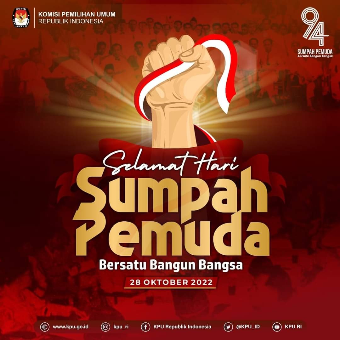 #TemanPemilih, segenap jajaran KPU mengucapkan Selamat Hari Sumpah Pemuda, semoga semangat pemuda tidak pernah luntur,