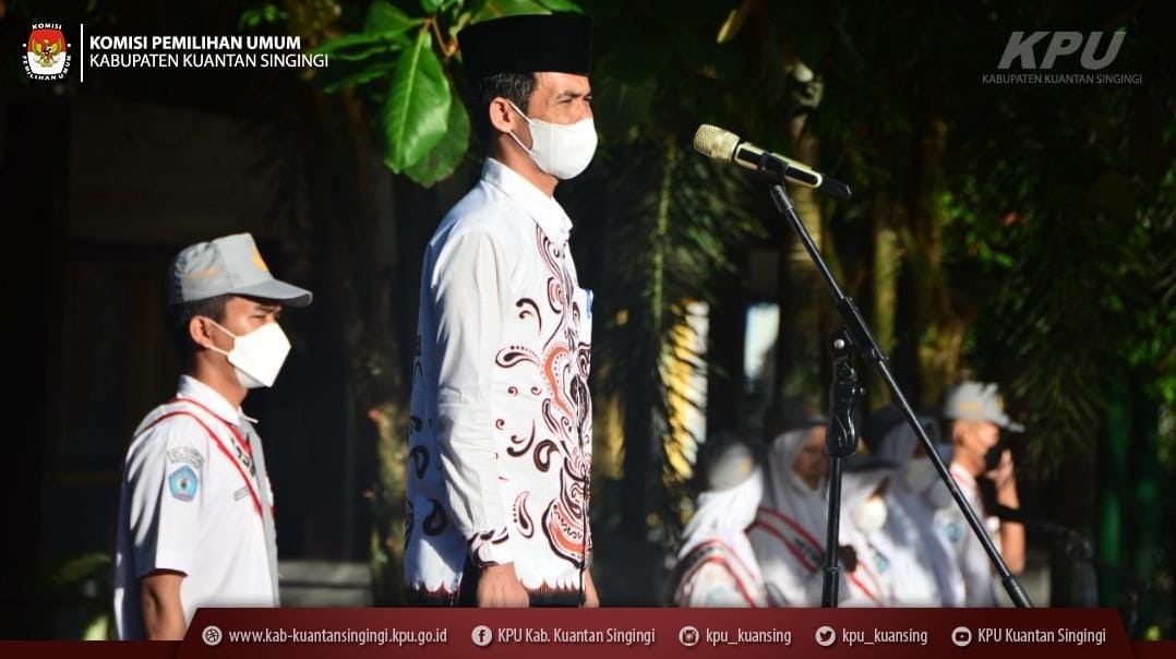 Senin, 7 Februari 2022, Ketua KPU Kabupaten Kuantan Singingi, Irwan Yuhendi, S.T bertindak selaku Pembina Upacara di SMAN 1 Teluk Kuantan. Ini merupakan tindak lanjut dari kegiatan Fasilitasi Pendidikan Pemilih Pemutakhiran Data Pemilih Berkelanjutan Segmen Pemilih Pemula (Fasdiklih Pemutakhiran DPB Segmen Pemilih Pemula) bulan Desember 2021 yang lalu. Turut mendampingi komisioner KPU Kuansing Wigati Iswandhiari, S.T., M.M dan Yeni Gusneli., S.Pd.