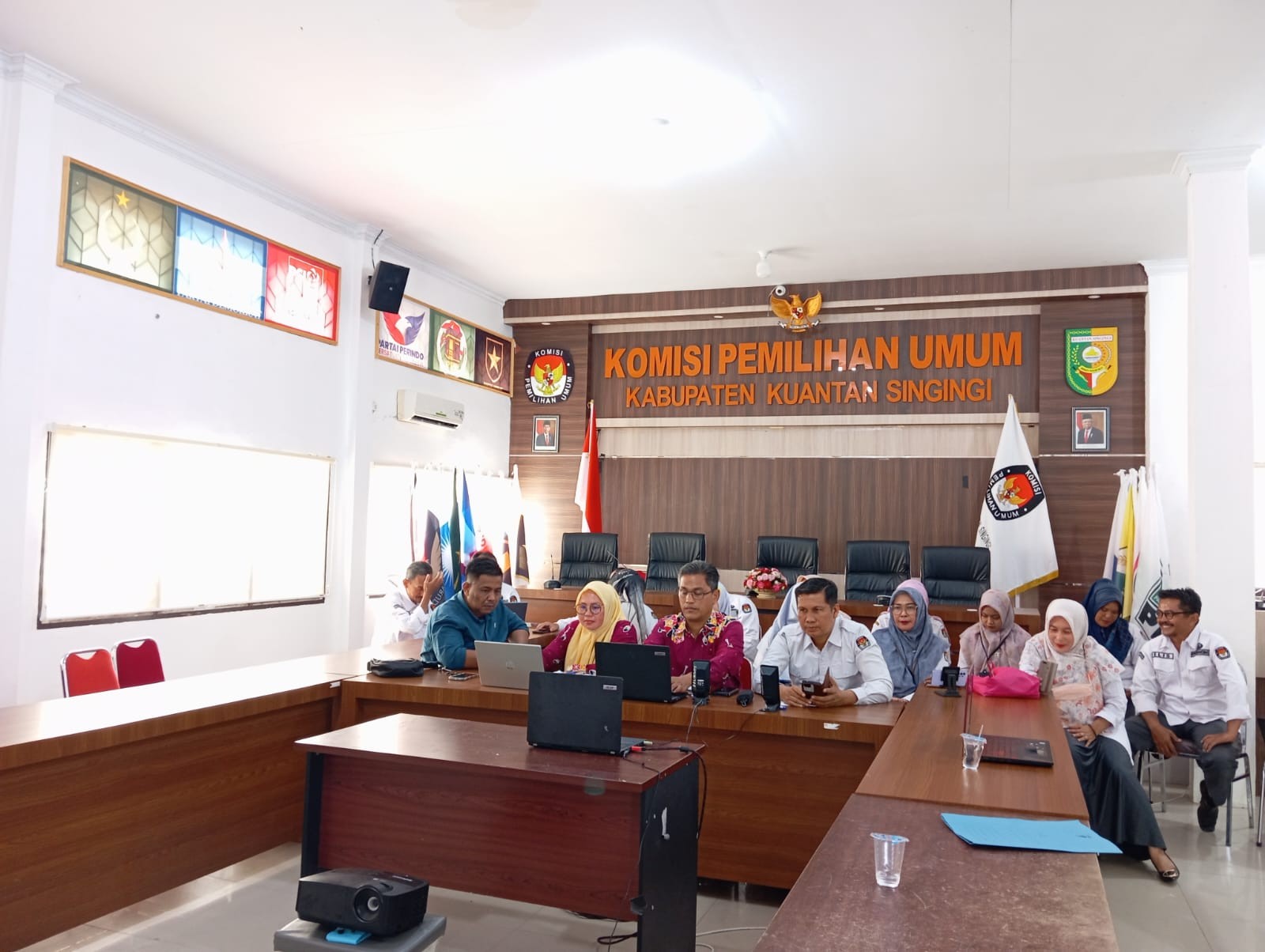 TELUK KUANTAN - Senin (21/4/2024) KPU Provinsi Riau mengadakan kegiatan Penguatan Kelembagaan untuk kesiapan pelaksanaan Pilkada Serentak Tahun 2024. Kegiatan tersebut dilakukan melalui zoom meeting yang diikuti oleh seluruh Komisioner dan Sekretariat KPU Kabupaten/Kota se- Provinsi Riau. Sementara dari KPU Kabupaten Kuantan Singingi diikuti oleh Ketua dan Anggota KPU Kabupaten Kuantan Singingi dan Sekretariat dihadiri oleh para Kasubbag dan staf yang bertempat di aula KPU Kabupaten Kuantan Singingi.