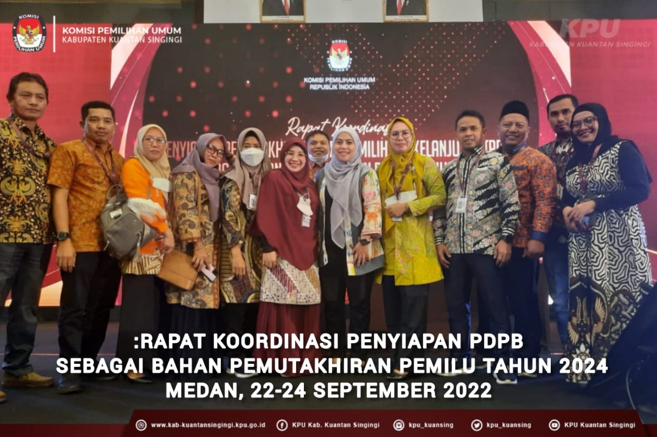 KPU kabupaten Kuantan Singingi hadir mengikuti Rapat Koordinasi Penyiapan Pemutakhiran Data Pemilih Berkelanjutan (PDPB) Sebagai Bahan Pemutakhiran Pemilu Tahun 2024 di Medan Sumatera Utara, Kamis (22/09/2022).
