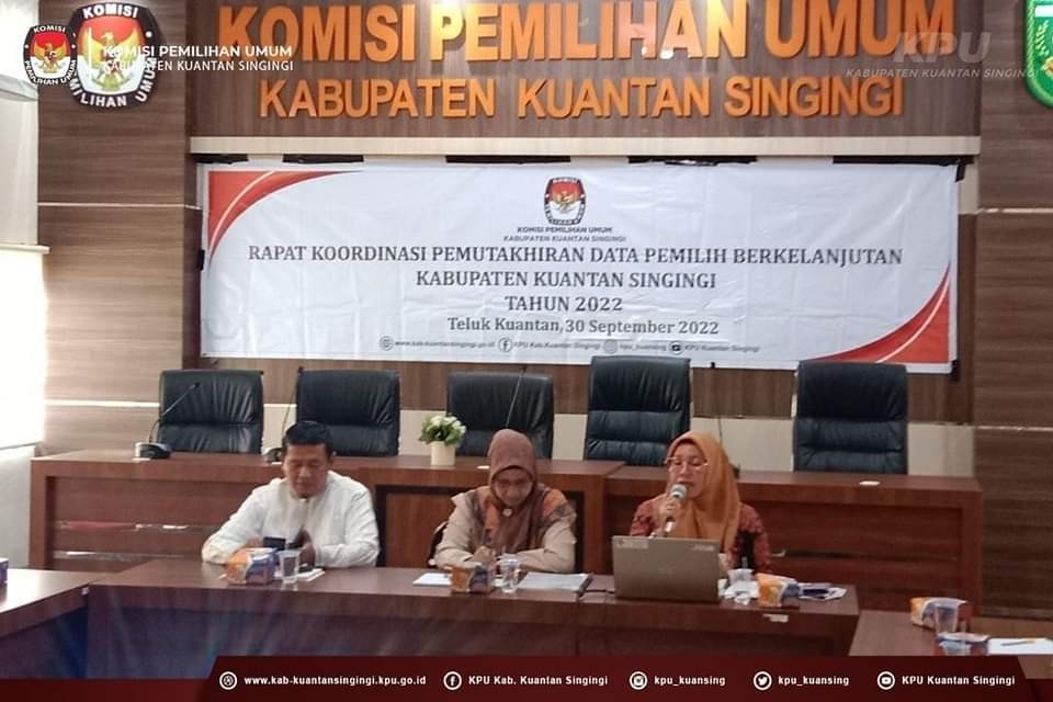 KPU Kabupaten Kuantan Singingi melaksanakan Rapat Koordinasi Pemutakhiran Data Pemilih Berkelanjutan Periode September 2022 pada hari Jumat 30 September 2022 di Aula KPU Kabupaten Kuantan Singingi.
