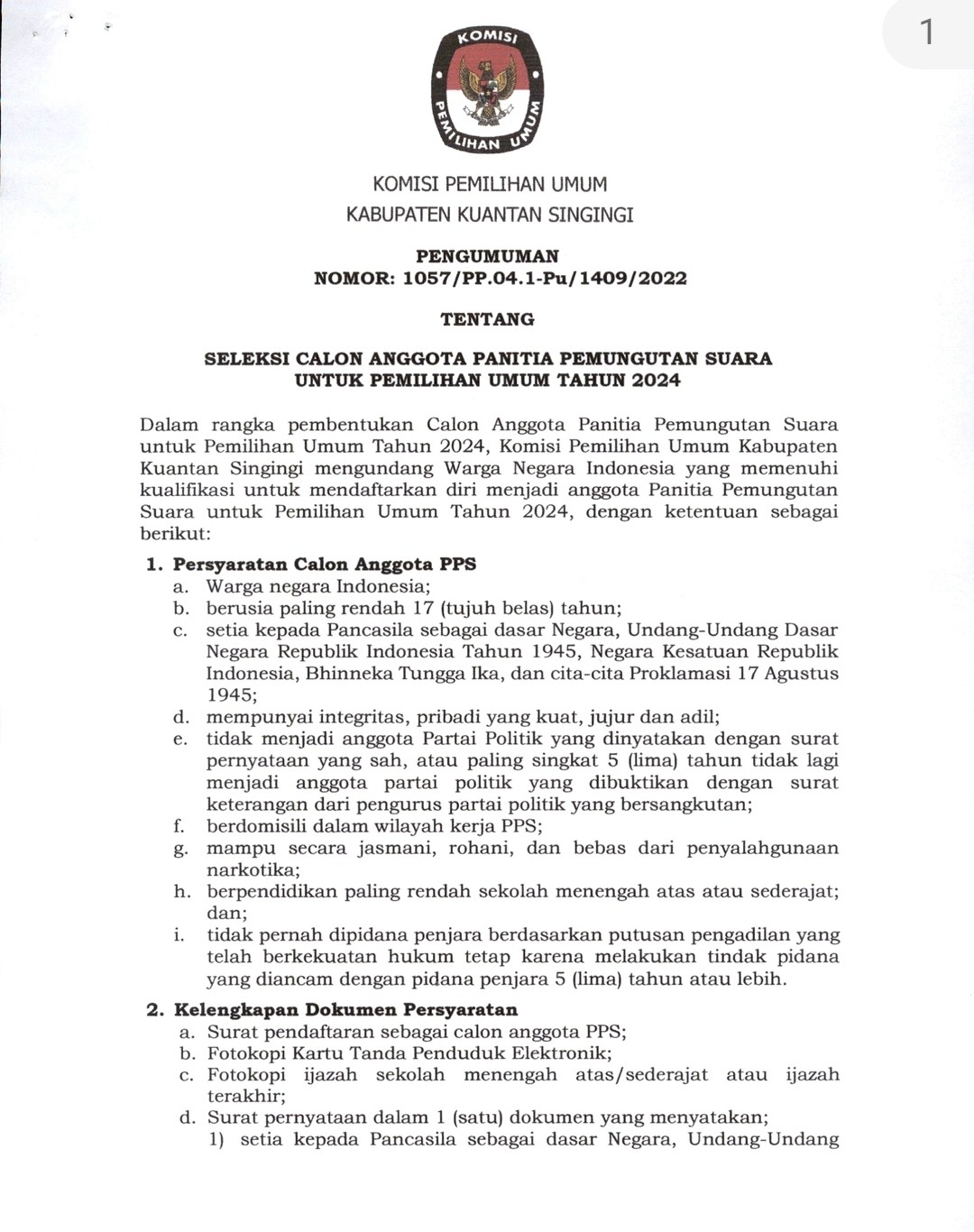SELEKSI CALON ANGGOTA PANITIA PEMUNGUTAN SUARA UNTUK PEMILU TAHUN 2024 Minggu, 18 Desember 2022 00:00 1765 PENGUMUMAN SELEKSI CALON ANGGOTA PANITIA PEMUNGUTAN SUARA UNTUK PEMILU TAHUN 2024 KLIK DISINI Baca Selengkapnya