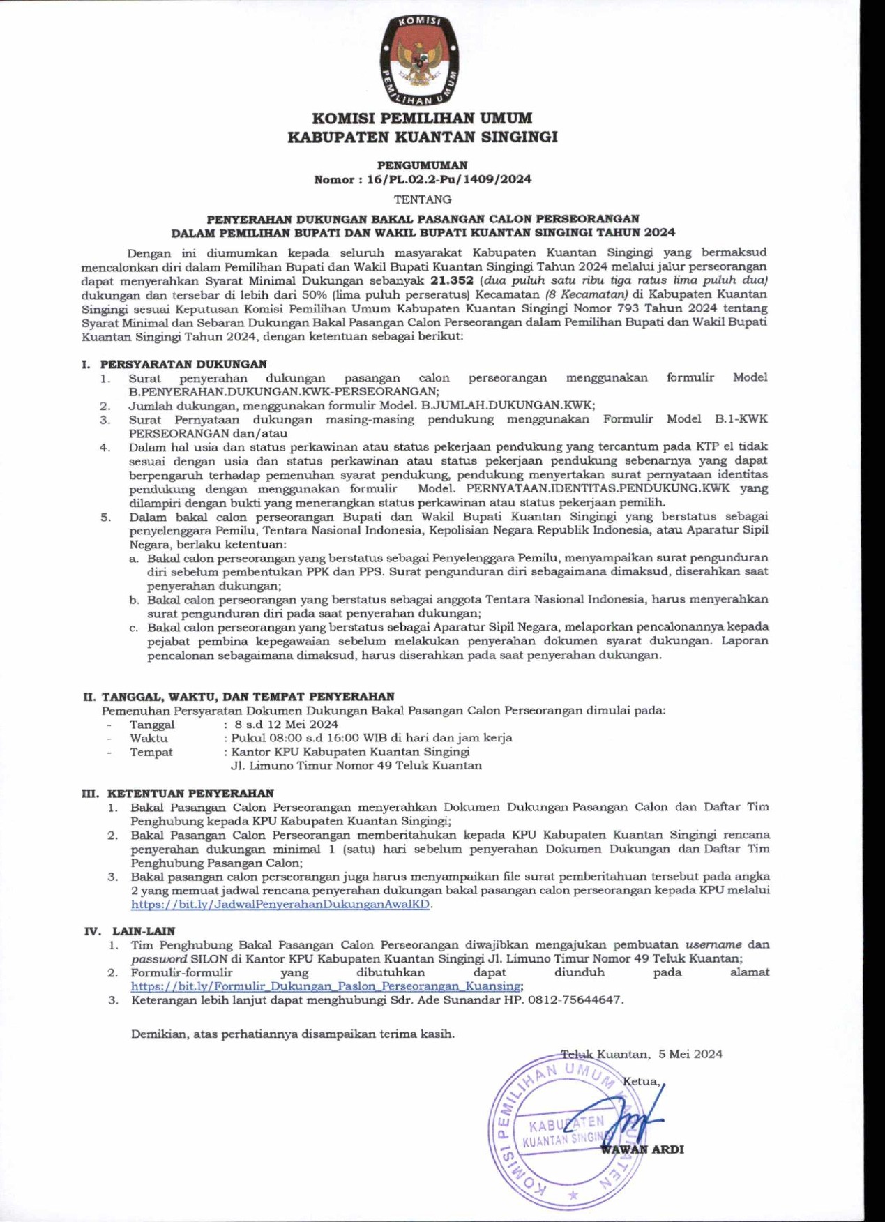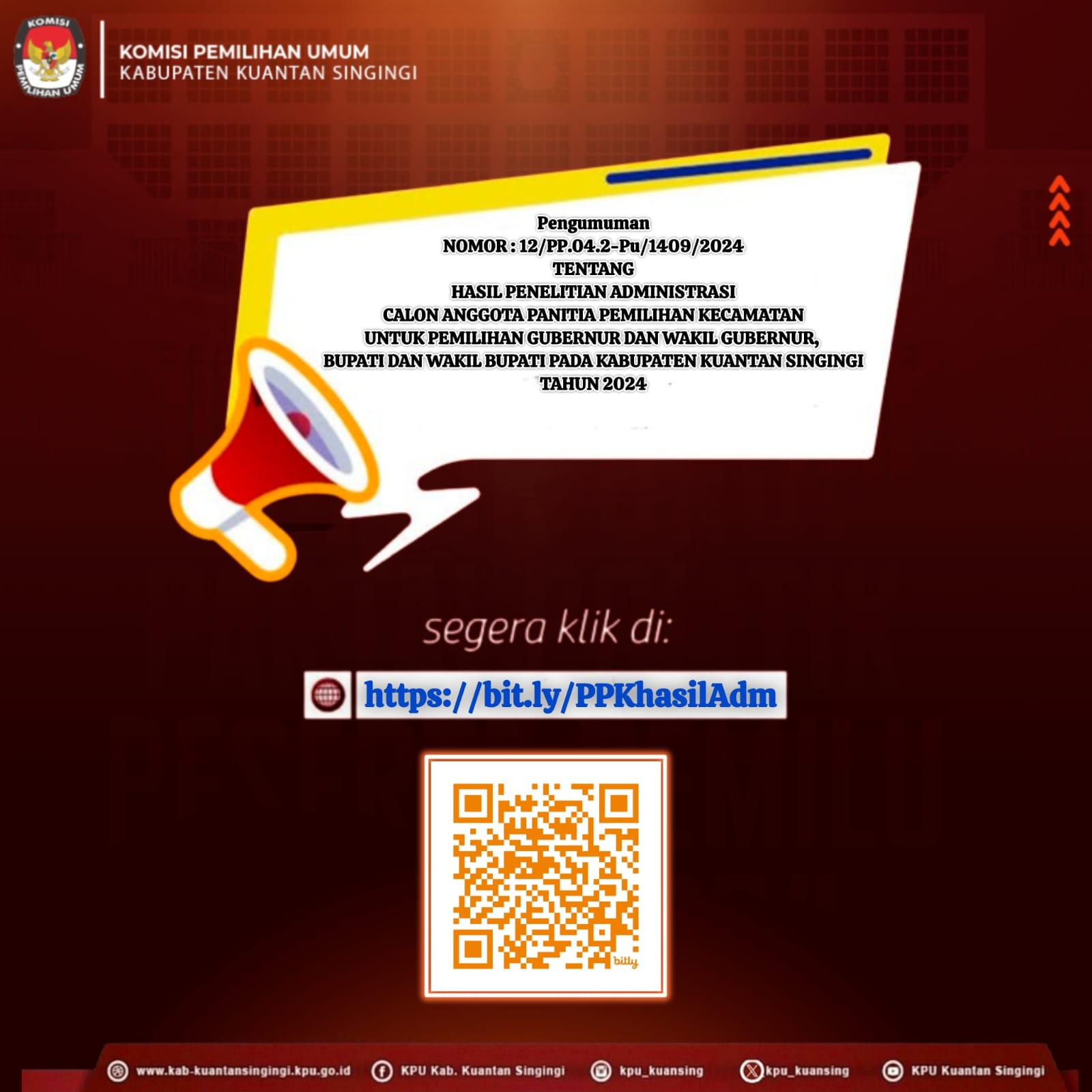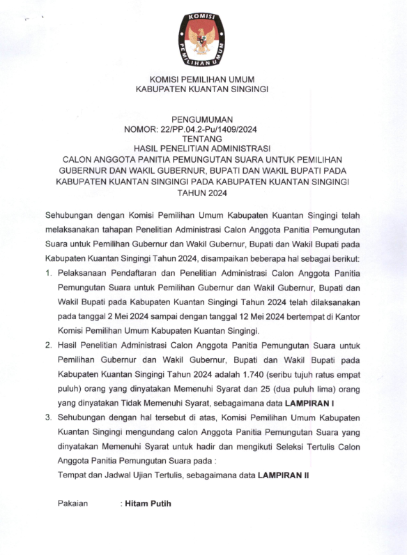 PENGUMUMAN HASIL PENELITIAN ADMINISTRASI CALON ANGGOTA PPK PILKADA SERENTAK TAHUN 2024