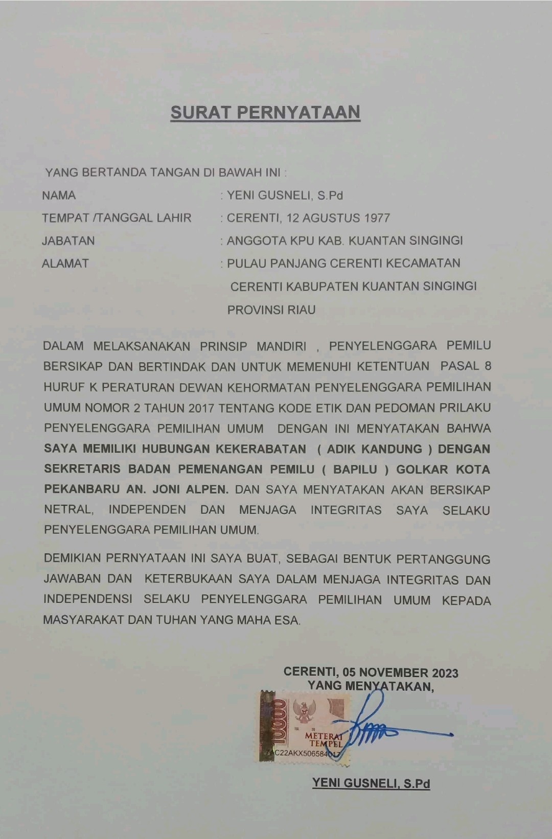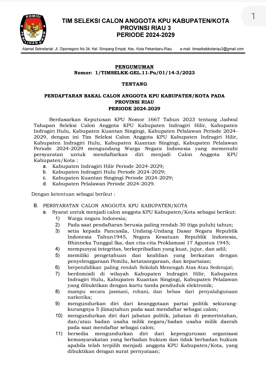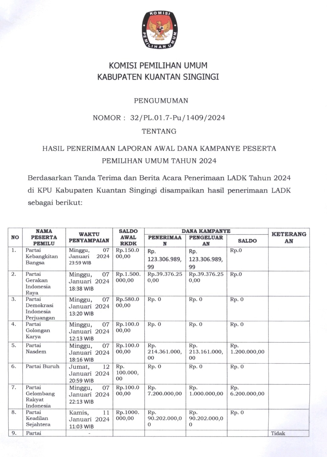 PENGUMUMAN TIM KAMPANYE PASANGAN CALON PRESIDEN DAN WAKIL PRESIDEN TINGKAT KABUPATEN KUANTAN SINGINGI PADA PEMILIHAN UMUM TAHUN 2024