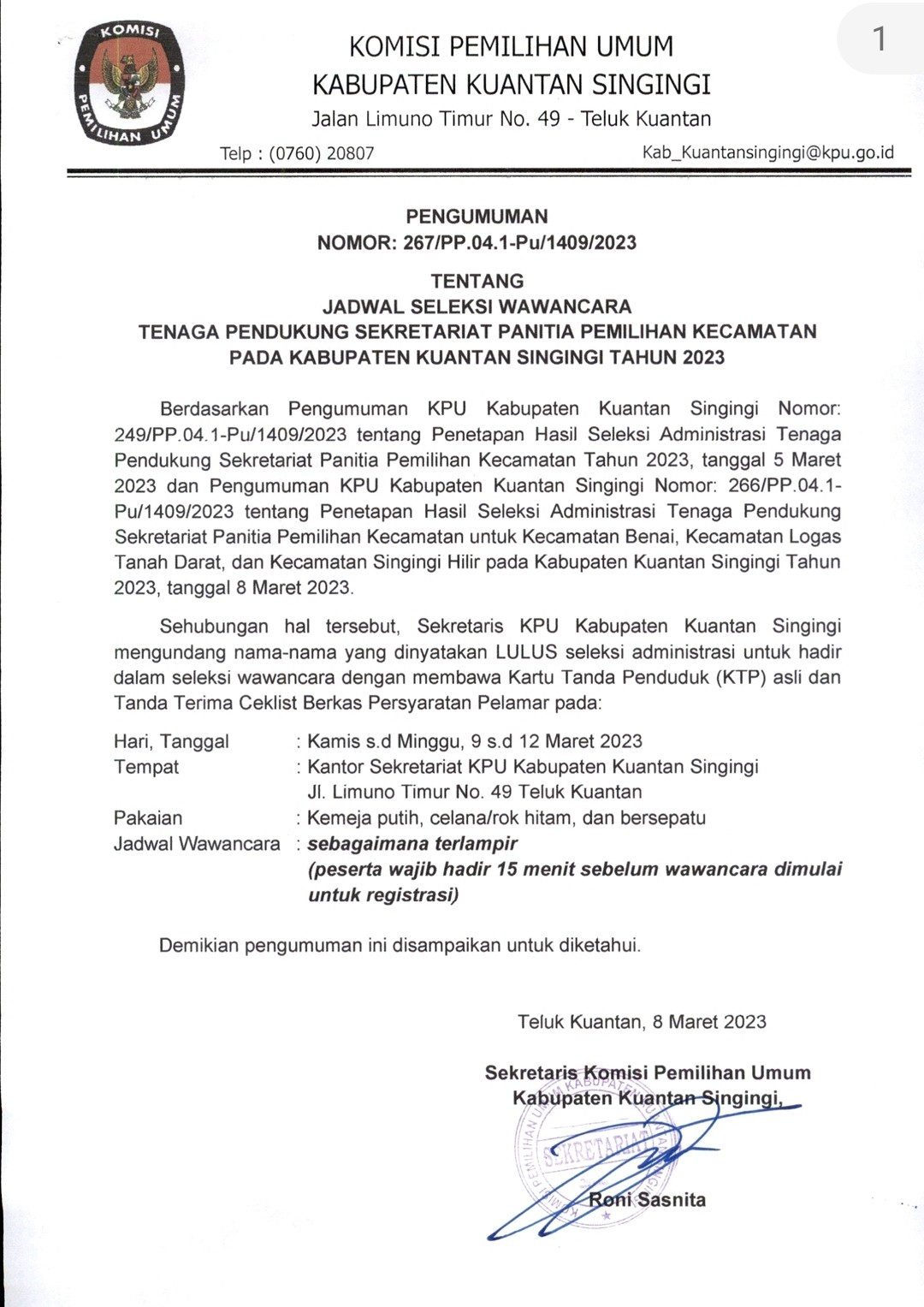 PENGUMUMAN JADWAL SELEKSI WAWANCARA TENAGA PENDUKUNG SEKRETARIAT PPK PADA KABUPATEN KUANTAN SINGINGI TAHUN 2023 Kamis, 09 Maret 2023 00:00 1019 PENGUMUMAN JADWAL SELEKSI WAWANCARA TENAGA PENDUKUNG SEKRETARIAT PPK PADA KABUPATEN KUANTAN SINGINGI TAHUN 2023 KLIK DISINI Baca Selengkapnya