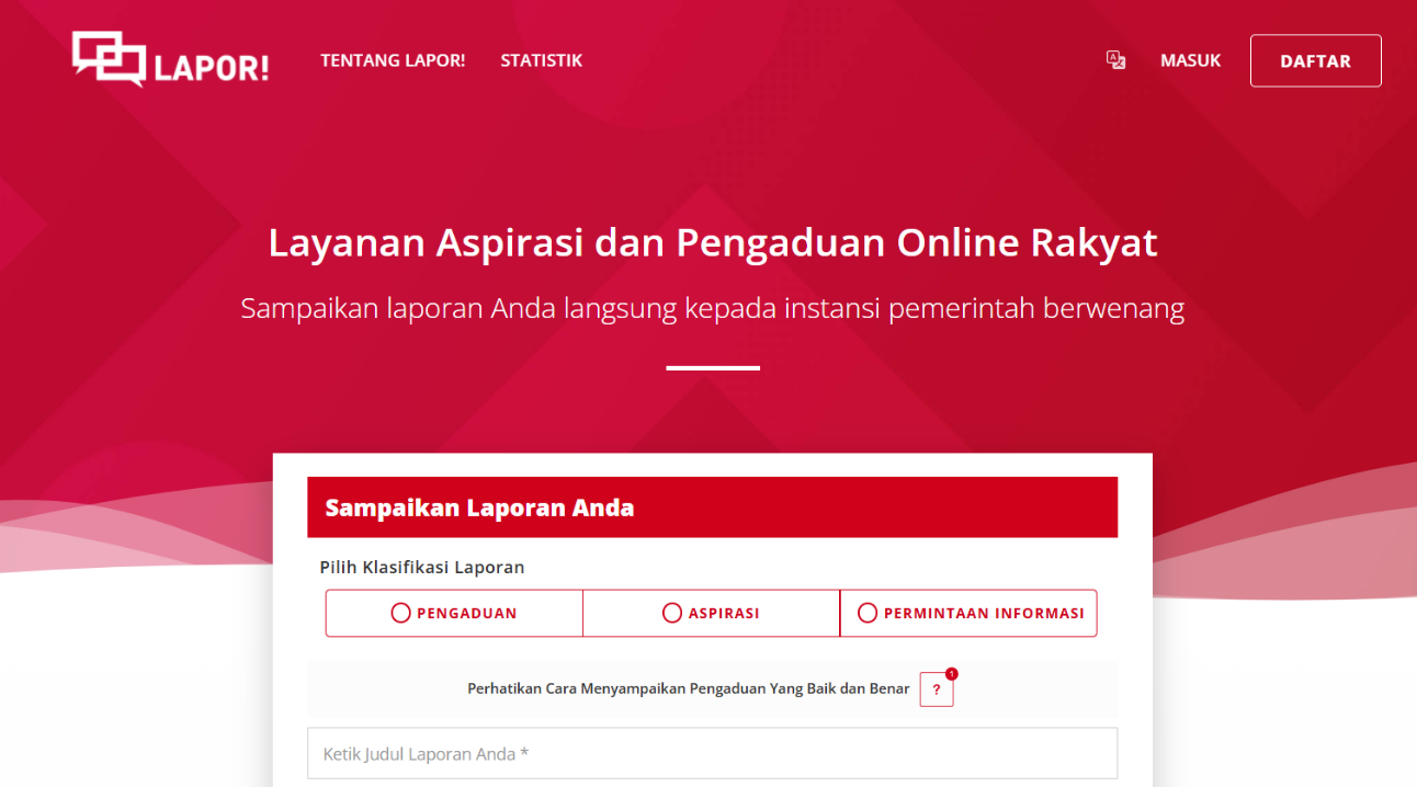 Aspirasi dan pengaduan dapat disampaikan melalui tautan berikut: https://lapor.go.id/